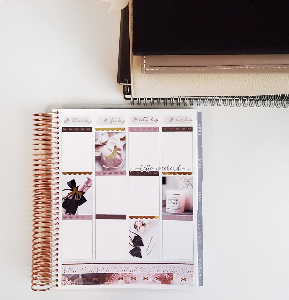 This is the planner that started it all. This is my version of a scrapbook. I use this planner to journal about what happened each week. I use sticker kits and make everything super pretty. So this isn’t necessarily functional, but rather decorative. I’ve been doing this for about 3 years and it’s one of my favorite hobbies. I love looking back on old planners to see how my style and life has changed over the years.