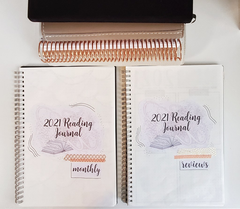 First up I have 2 reading journals for 2021. The reason I did 2 is 1) because the spiral notebooks I got are not that large and 2) because I wanted my monthly tracking to be separate from my books reviews. So 1 notebook is simply to track my monthly stuff – TBRs, Readathons, Stats, etc. And the other is exclusively about reviews and some year long lists. In 2021 I really want to do more journaling so I thought reviews for some books would be fun. But I didn’t want them taking up space in my monthly journal.